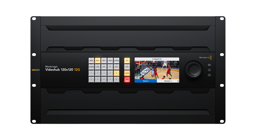 Blackmagic Design, Videohub 12G yönlendirici serisinin en son modeli Blackmagic Videohub 120x120 12G’yi duyurdu. Devasa Blackmagic Videohub 120x120 12G; kısayol butonları olan bir ön panele, etiketleri veya canlı videoyu görüntüleyebilen bir LCD ekrana, video kaynaklarını aramak için işlenmiş metalden bir döner düğmeye, referans bağlantılarına ve yedek güce sahiptir. Ayrıca sıfır gecikme, SDI sinyal yenileme ve Ethernet üzerinden harici kontrol de sunar.