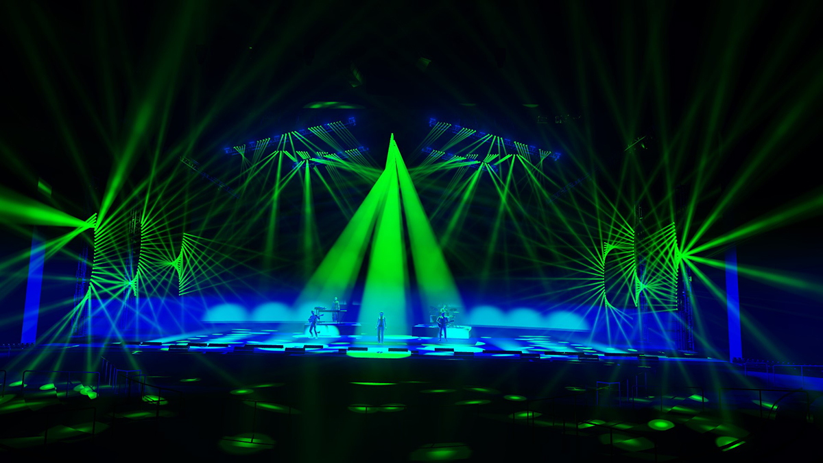 Teknik kurulum, geniş sahnenin kapsamlı bir şekilde görüntülenmesi için tiyatronun önünde ve arkasında birer tane olmak üzere iki kamerayla Follow-Me 3D'yi kullandı. Prodüksiyonda, altı spot pozisyonunu yöneten altı manuel operatör görevlendirildi; ayrıca tüm grubu kapsayan klavye ve davul için ek sahte noktalar da kullanıldı. Sahnenin ön tarafındaki 32 armatür, verimliliği artırmak için sistemin yakınlık özelliğinden yararlandı.