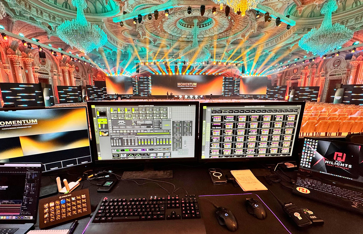 Momentum Küresel Kalkınma Finans Konferansı, karmaşık çok yüzeyli bir ekranda gerçek zamanlı oynatım, birleştirme ve haritalama ile desteklenen görsel olarak sürükleyici bir deneyim sundu. Video sisteminin merkezinde, ACT Entertainment markası olan Green Hippo'nun Hippotizer Medya Sunucuları yer alıyordu.